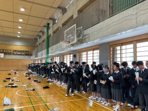 挨拶指導では、授業前と授業後の挨拶の重要性について再認識しました。学年全体で何度か練習すると、はきはきとした声が体育館中に響き渡りました。