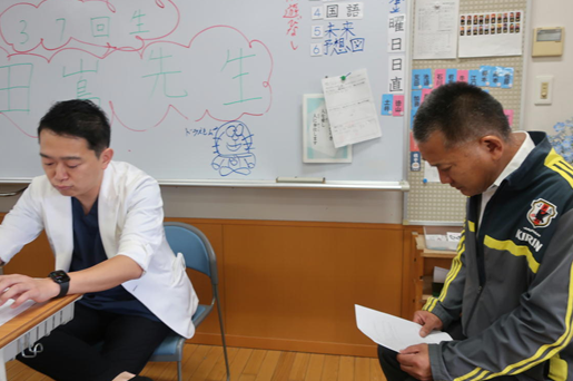 そして担任を患者に見立て、「良い診察」と「悪い診察」の違いを寸劇を通して子どもたちに学ばせてくださいました。