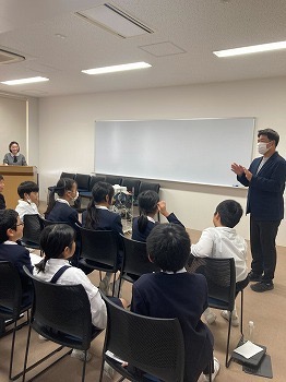 11月14日金曜日の5・6時間目、第35回の「未来予想図」を実施しました。本校卒業生による特別授業。4年生はそれぞれの教室で、5年生は1・2組合同で会議室で行いました。子どもたちは先輩の話に熱心に耳を傾け、充実した時間を過ごすことができました。