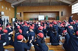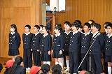 続いて、1年生から5年生の各学年から6年生へ歓送の歌を贈りました。これまで優しく接してくれたことへの感謝の思いを込め、心を一つにして歌う姿がありました。教職員も卒業生一人ひとりの輝かしい未来を願い歌を贈りました。