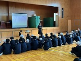 児童会のメンバーが司会進行し、まずは、全校で〇✕クイズをしました。学校に関する問題や、6年生の先生にちなんだ問題が出題されると体育館には大きな声が広がり、学年を越えて楽しく交流する様子が見られました。