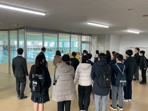 学生スタッフによる発表のあとは、入試に向けての準備や受験方法について担当教員から詳しい説明がありました。説明終了後は、個別相談やグループに分かれ、生徒スタッフと教員による施設見学へご案内いたしました。部活動や、昼食、勉強についてなど、生徒自身の案内のもと実際の学校生活について説明がありました。教室や体育館、プール、武道場、トレーニングルーム、食堂などを実際に周りながら説明をさせていただきました。