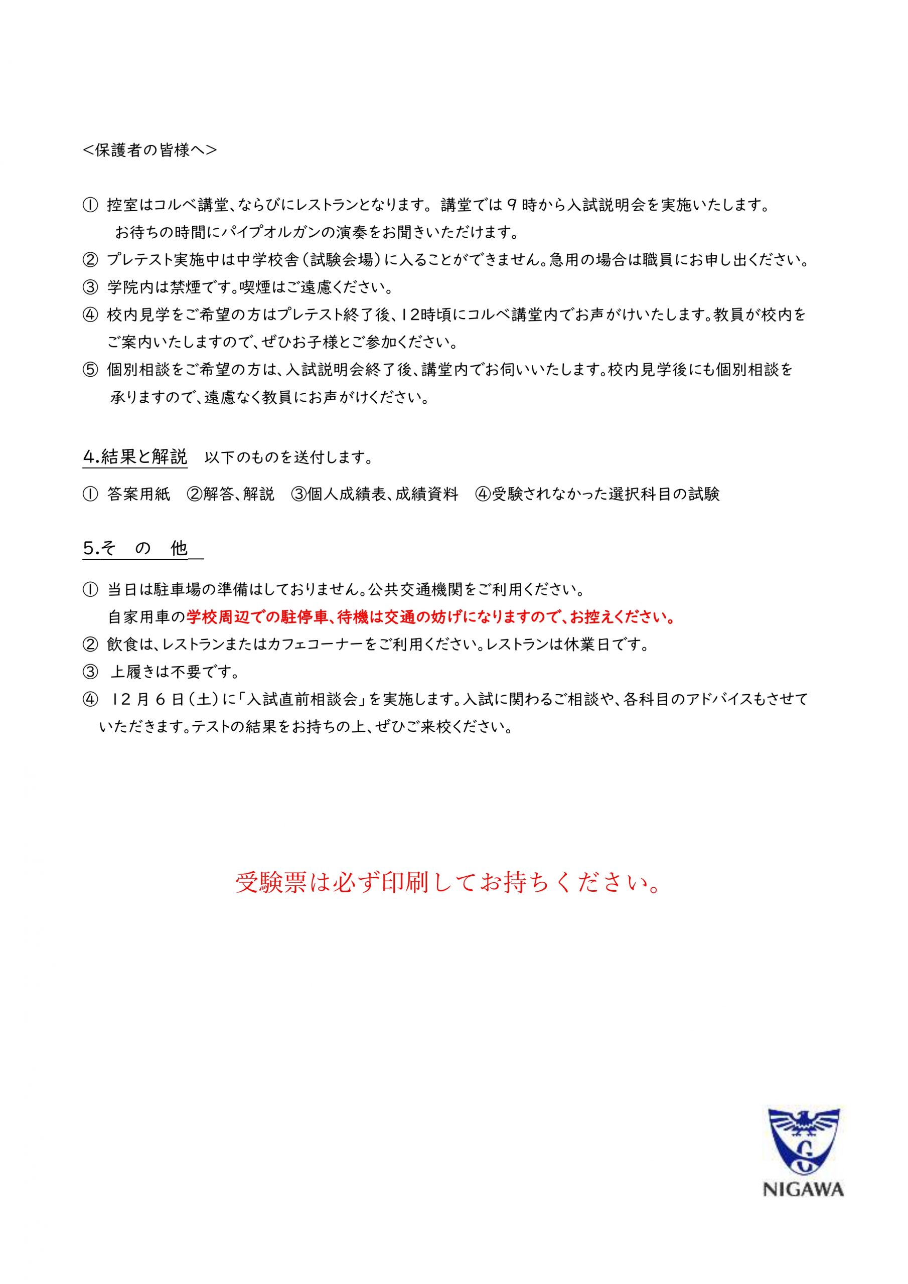 また、受験票はご家庭で印刷をし、当日ご持参をお願い申し上げます。