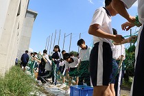 昨日の5時間目、前期のほんとうに最後のミーティングでは、前期の振り返りが行われました。常にリーダーでした3年生から一言も。また、畑に残っていたマルチや支柱を力を合わせて片付けました。