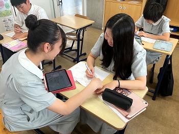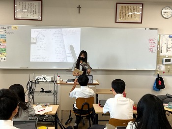 仁川学院中学校では、講義形式だけでなく、自分たちが考え、それを他者に表現する授業を大切にしています。