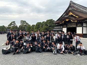 徳川家康が築城し、京都での活動の拠点となった場所です。大政奉還はこの二条城で行われ、江戸時代が終焉を告げ、明治時代が始まった大きな歴史が刻まれた地。バスガイドさんの案内に耳を傾けて、ここでもしっかりと学んだことをメモしました。