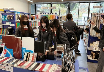 学校紹介のあと、学生スタッフによるキャンパスツアーが行われました。教室のイスや机もですら中学校とはまるで違います。また、天文台がありそこには見上げるほど立派な望遠鏡が! 売店では文房具以外にも大学のオリジナルグッズが販売されていて、仲間の誕生日プレゼントを買って渡す微笑ましいシーンもありました。