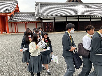 794年に都が京都へ移り、明治に至るまで天皇は京都にお住まいでした。いにしえの面影を目の当たりにしながら、パンフレットを読み、自分たちのしおりに学んだこと・気づいたことを書き留めていきました。