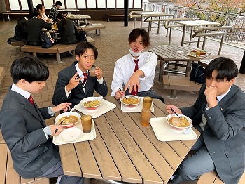 昼食は大学内の食堂で。京都産業大学にはなんと8か所も店舗があり、さらには日替わりのキッチンカーやタピオカドリンクの店まであります。ますますキャンパスライフへの憧れが募っていきます。