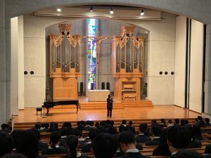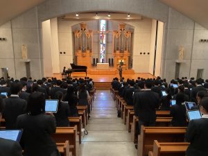 その後、音楽教員と伴奏を担当する生徒とともに聖歌の練習を行い、結団式は締めくくられました。