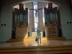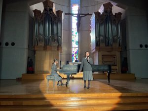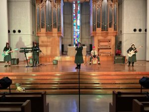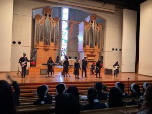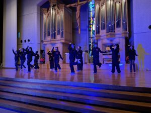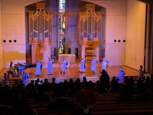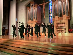 休憩のあと、聖歌合唱部の合唱がありました。有名テーマパークのCMにも使用されている聖歌に始まり、今年大流行した大人気アイドルグループの楽曲を振付をして歌うなど、大盛り上がりの舞台となりました。