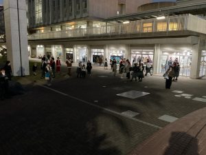 キャンドルサービスのあとは最後のイベント、点灯式です。大人も子どもも、アゴラステージ前で今か今かと待ちわびて……生徒会の掛け声で、5・4・3・2・1・!!。点灯は大成功に終わりました。