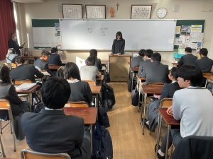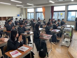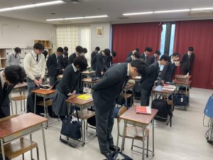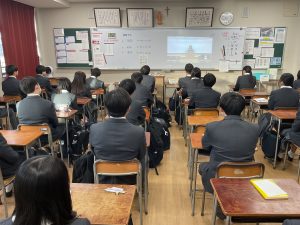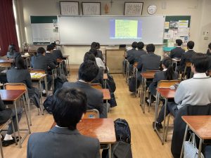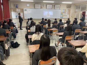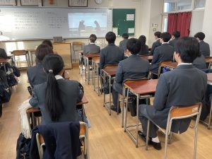 はじめに校長先生より、「高校3年生は、卒業に向けた準備を進めてほしい。高校1・2年生は、次の学年への準備をしっかり行いながら、あっという間に過ぎてしまう3学期の時間を大切に過ごしてほしい」との話がありました。
