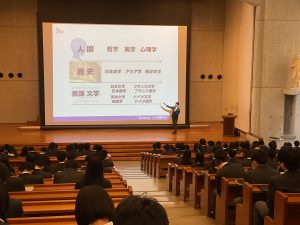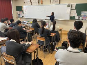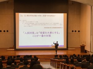 昼食を取り、午後からは、高校2年生を対象に進路講演会を行いました。生徒たちに理解してほしい「学部選択」のこと、「進路」のこと、「入試」のことについて、ご講演いただきました。いよいよ受験生となる生徒たちの表情は、真剣そのものでした。