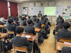 次に、教務部長から「3学期は、すぐに行動に移しながら次への準備を進める期間にしてほしい」との話がありました。最後に、生徒部長より「他者に対するふるまいを意識し、自分を律する3学期にしてほしい」との話がありました。