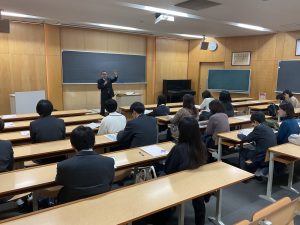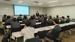 法学・国際・外国語系統を志す生徒たちが、京都産業大学を訪問しました。学部説明だけでなく、食堂や寮などの施設見学も行い、大学生活をより具体的にイメージする貴重な時間となりました。「ここでどんな4年間を過ごすのか」、キャンパスを歩く生徒たちの表情には期待がにじんでいました。