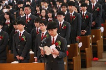 卒業生の皆さん。皆さんの前途が、光り輝くものであるよう、教職員一同、心からお祈りしています。