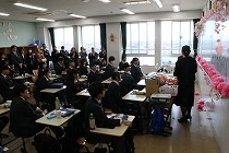 写真撮影の後、学年フロアでは父母の会の方々が準備してくださった茶話会があり楽しい思い出を語り合いました。最後は各教室で行われた最後のホームルームでは、3年間の歩みを振り返り、感謝を伝え合ったりと、別れを惜しむ時間がゆったりと流れていました。