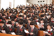 式は本校らしくキリスト教の「みことばの祭儀」から厳かに始まりました。