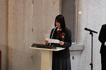 在校生代表による送辞では、共に汗を流した野外活動のエピソードが語られました。「先輩が優しく声をかけてくれたことが一番の思い出です。教えていただいたことを、これからは私たちが実践していきます。」という頼もしい決意に、卒業生も感慨深げに見守っていました。
