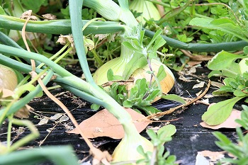 こちらは玉ねぎの畑です。葉が倒れてきたら収穫適期のサイン。ちょうど良い収穫のタイミングを迎えました。