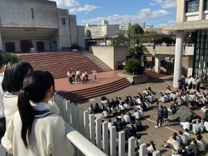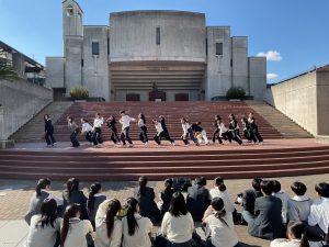 10月28日(火)・29日(水)に、仁川学院のコルベ講堂下 アゴラステージにて、秋の発表会をお昼休みに行いました。お昼休みの短い時間ではありましたが、多くの生徒や先生方が足を止め、温かい拍手でステージを見守ってくださいました。