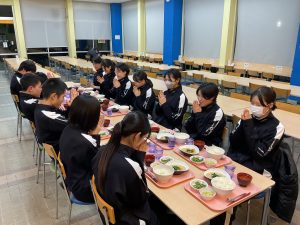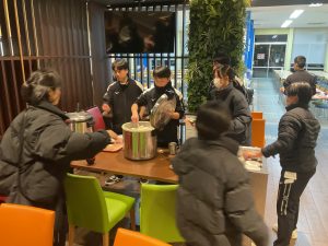 翌朝5:20より開始される寒稽古に向け、剣士たちは6日(金)の放課後、授業終了後すぐに移動しました。西宮から南大阪までの長旅となりましたが、無事に大阪体育大学に到着しました。宿舎となるセミナーハウスにて食事をとり、明日に備えてすぐに就寝しました。