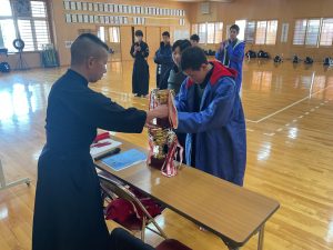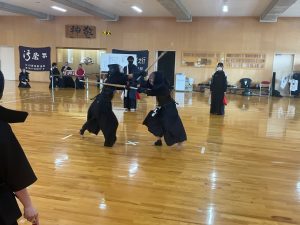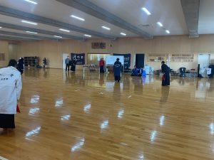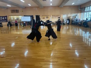 開会式後、速やかに試合が行われました。冬の寒い時期に、厳しい稽古を積みその成果を発揮するべく試合に臨みました。中には、経験の浅い選手が思い切った一刀で一本を取得する場面もあり、見どころある試合が展開されました。