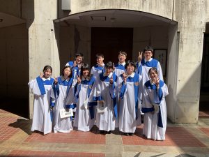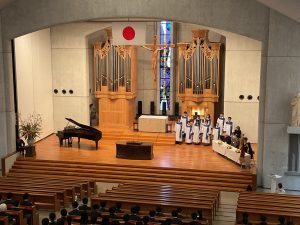 聖歌合唱部は、中学校・高等学校の入学式に聖歌隊として参加しました。学校内で執り行われる宗教行事も、私たちにとって大切な活躍の場です。
