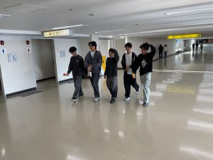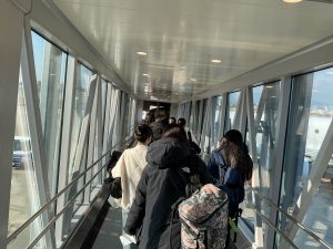 出発式の後は搭乗手続きを行い、搭乗開始まで待機しました。待合室では飛行機や離陸の様子が見られ、生徒たちのわくわくが止まりませんでした。
