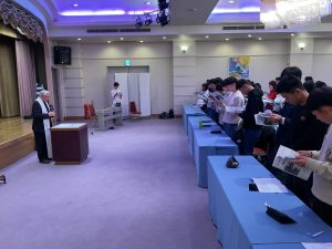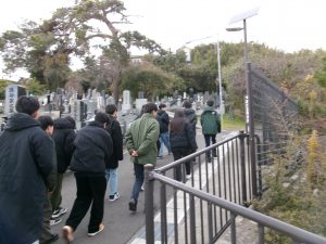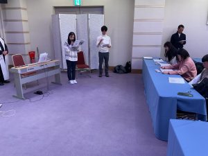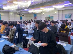 その後、神父でもある校長先生により、「祈りのつどい」という儀式を行いました。この研修旅行を通してクラスメイトとの絆を深めるため、高校生として過ごす残りの期間を悔いなく過ごすため、そして被災された方々のために、生徒たちは祈り、聖歌を歌いました。
