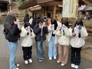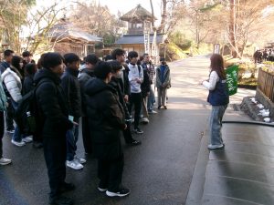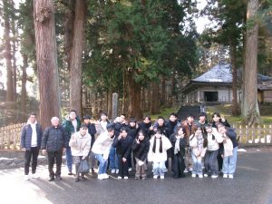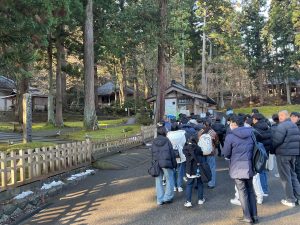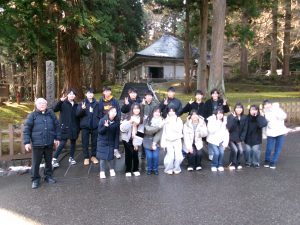 平泉では、現地ガイドの説明を受けながら国宝・中尊寺金色堂を拝観しました。奥州藤原氏清衡公が平和な世界を願って建造したと言われる金色堂の優美さに、生徒たちは驚いていました。その後、お守りやおみくじ、ずんだ餅などを買いながら月見坂を経て平泉レストハウスで昼食をとりました。