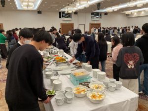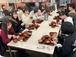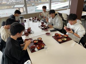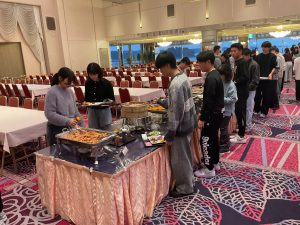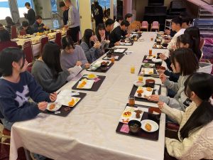 12月8日(月)、国内研修旅行の2日目の朝は志津川湾からの朝日に迎え入られました。今朝のバイキングでは生徒たちは自分の好きなものやクラスメイトから勧められたものを食べました。