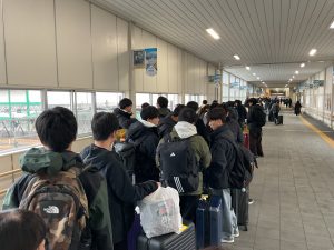 12月8日(月)23時15分、就寝直前に青森で大きな地震が発生しました。大きな警報音と長く続く激しい揺れに不安を感じながらも、前日の震災学習で学んだ「とにかく逃げろ、一緒に逃げろ」という言葉を思い出し、教員到着時には既に暖かい格好で荷物を持ち、迅速な避難ができました。