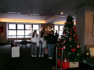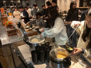 12月9日(火)、前日の地震であまり眠れなかった中、国内研修旅行の3日目が始まりました。朝食時、生徒たちはいつも通り食べられる人もいれば、少し喉を通りにくそうにしている人もいました。