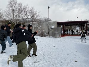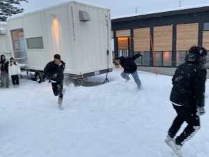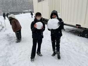 本日は昨日決定したスキー研修中止に加え、アウトドア体験もインドア体験も中止となってしまいました。しかし、スキー場での雪遊びはできることになり、多くの生徒がゲレンデに向かいました。男子は到着してまもなく雪合戦が勃発し、クラス関係なく白熱した戦いをしていました。一方、女子は改めて北海道のパウダースノーを堪能しながら、雪だるまを作ったりして過ごしました。