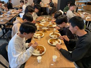 昼食は、大盛りカレーライスでした。少し辛めではありましたが、インド人シェフの作る特製スパイスカレーを完食する生徒が意外にも多く見られました。