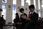 1日の最後は振り返りを行い代表生徒が「平和の尊さを深く胸に刻んだ1日」と振り返りました。最後にアヴェ・マリアの祈りを唱え、初日を終えました。