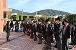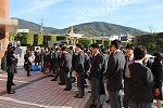 12月10日(水) 待ちに待った長崎研修旅行が幕を開けました。1日目のテーマは「キリスト教」「平和学習」です。学校での学びを基に「コルベ神父の生き方と、日本におけるキリスト教信仰の歴史を学ぶ」こと、「原爆が投下された長崎で、平和のありがたさを考える」ことを目的とします。長崎へ向かうべく朝早く、眠い目をこすりながら続々と集合場所の新神戸駅に生徒が集まります。班長・副班長を中心に点呼、健康チェックが行われたあと、出発式にて、緊張感と期待感が入り混じる中、生徒代表がこの旅への強い決意を表明しました。