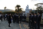 その後は追悼平和祈念館、原爆資料館、平和公園での「平和学習」。まず初めに、生徒たちがこの旅のために準備してきた平和セレモニーを執り行いました。生徒たちが心を込めて書き上げた平和宣言を奉納し、「二度とこのような悲劇を繰り返さない」という強い決意を、表明しました。この瞬間、生徒たちの顔つきは、出発時とは違う、真の学びを得た者の真剣な表情になっていました。