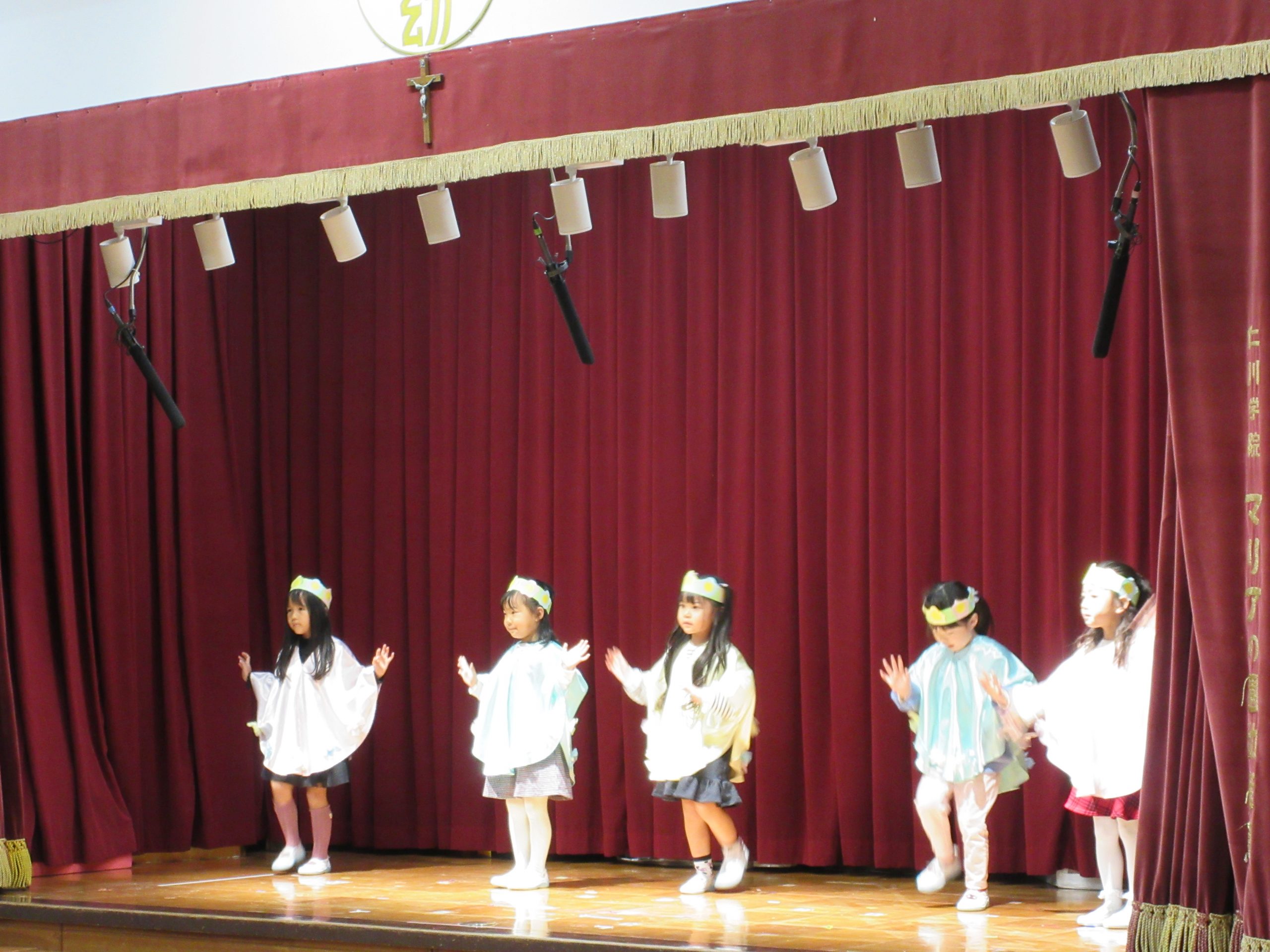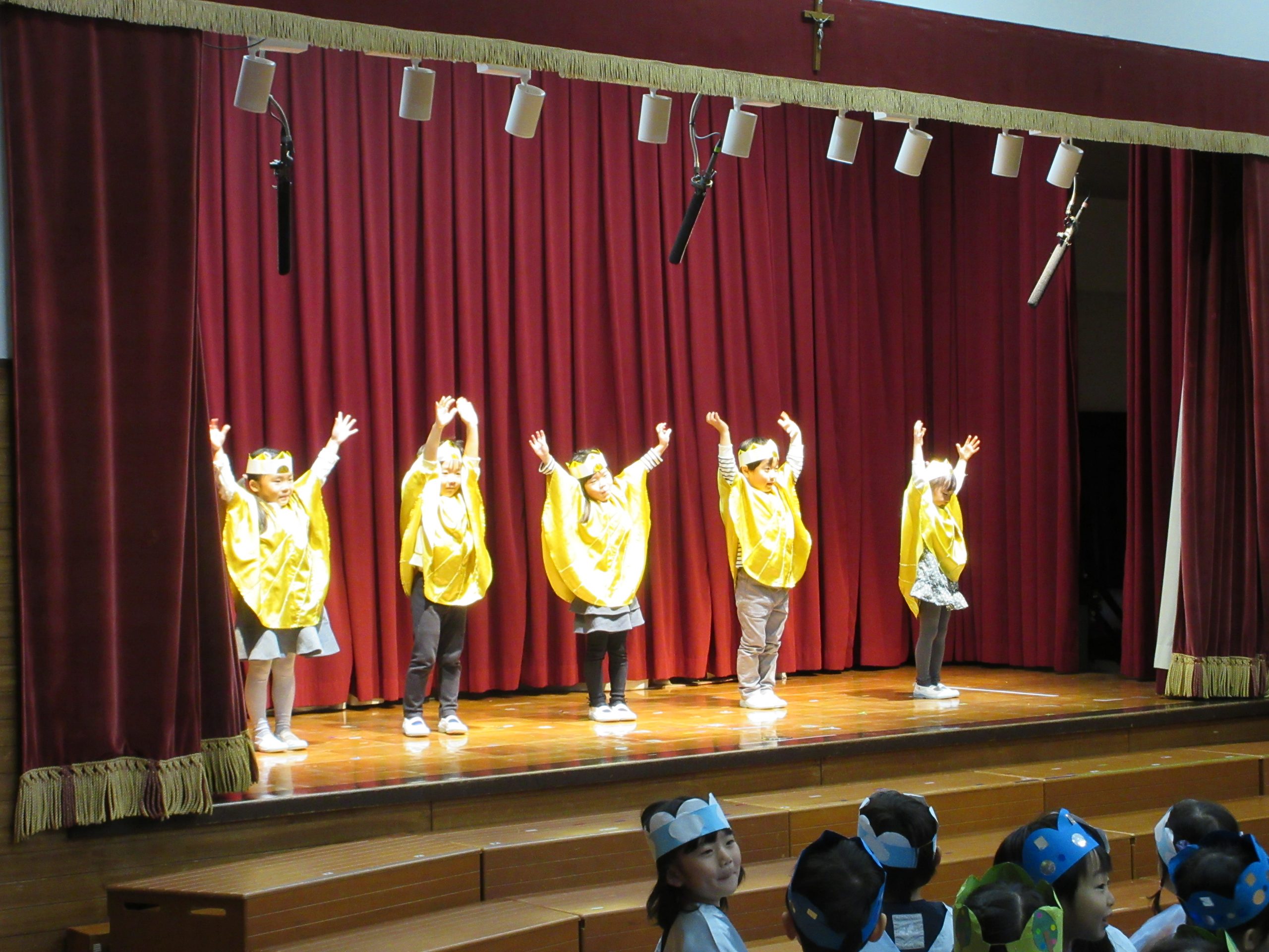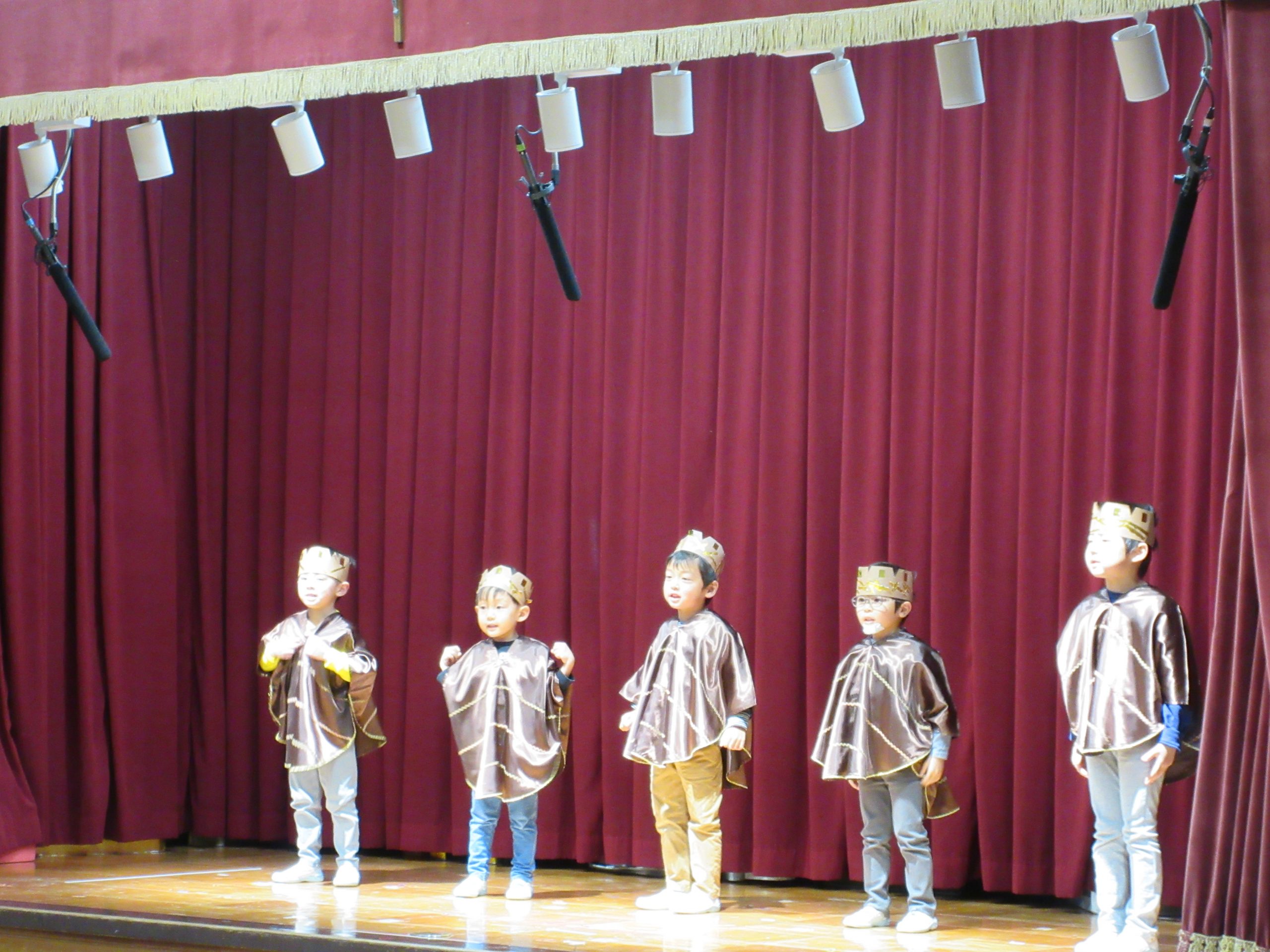 今日は待ちに待った聖劇発表会でした。毎日、学年全員で心と力を合わせて練習し、自分のことだけではなく、お友達のダンスやセリフの上達も一緒に喜んで、みんなで聖劇を作り上げてきました。当日は、お家の方がたくさん観にきてくださって、ドキドキしながらも、一生懸命頑張った子どもたちの活き活きした様子をご覧ください!