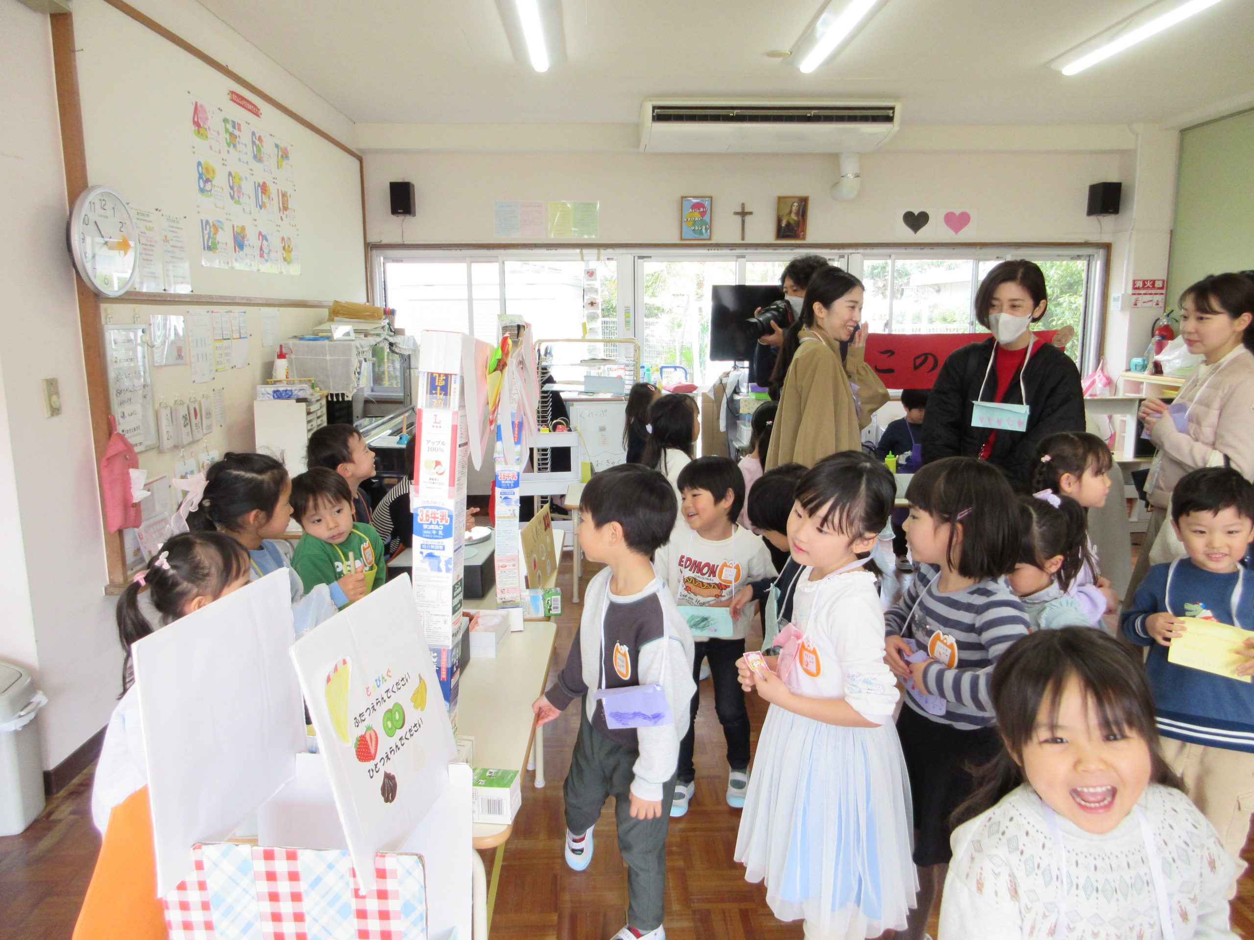 「お店屋さんごっこへようこそ!」と元気な声でお店屋さんごっこがオープンしました。