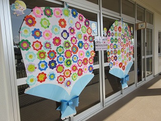 年少組と年中組の子どもたちから、大好きなお兄さんお姉さんへの心のこもったブーケの窓飾りも、みんなのことをお祝いし、見送っているようです。