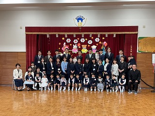 ホールでの入園式のあと、みんなで記念撮影をしました。素敵なポーズを決めていた子どもたちが笑顔いっぱいの毎日を過ごせるよう職員一同で努めてまいります。これからどうぞよろしくお願いいたします。