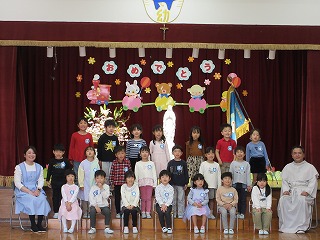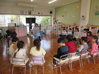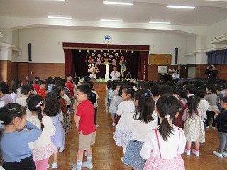 お引越し後、ホールで始業式。新年中・新年長へと進級した子どもたちをお祝いしました。新しいクラス、新しい先生やお友だちと始まるこれからの園生活。最初のうちは少しドキドキするかもしれないけれど、少しずつ慣れて、仲良く楽しく過ごしていってほしいと思います。そして、この一年もいろんなことにチャレンジして大きく成長してくださいね。また、新しく幼稚園の仲間になってくれた3名のお友だちの紹介もありました。これから楽しく過ごしていきましょうね。